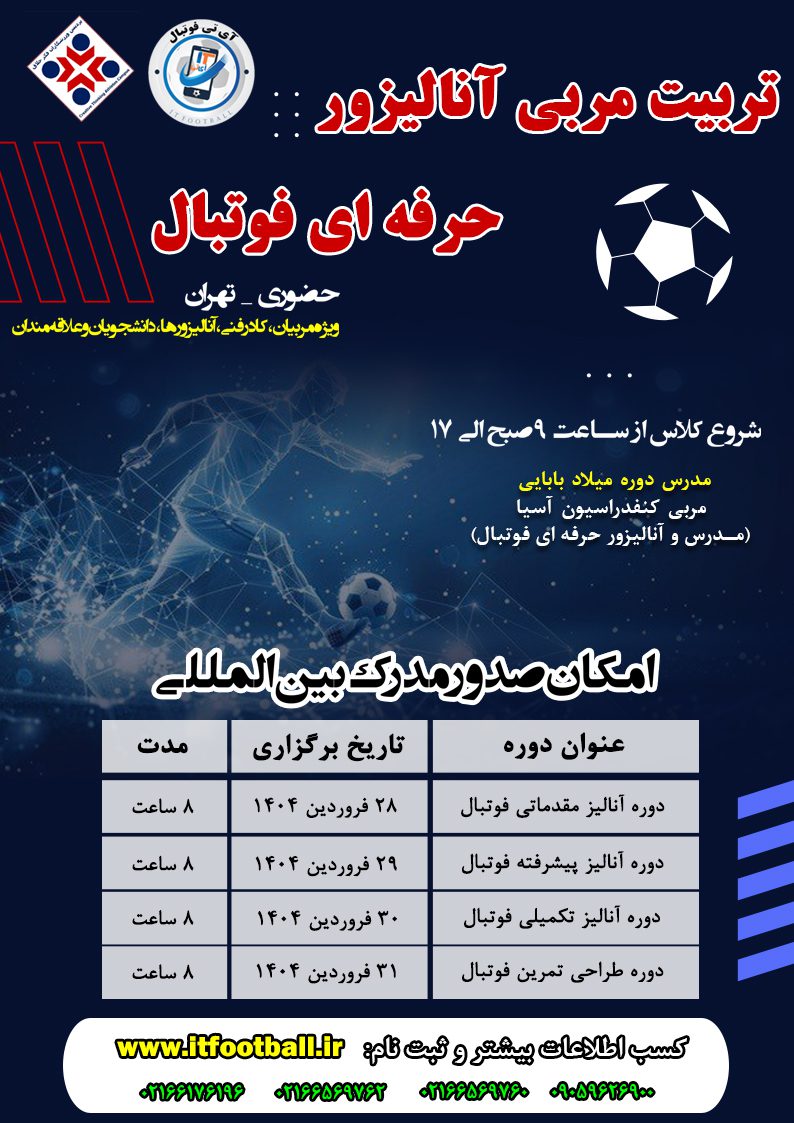 تربیت مربی آنالیزور حرفه ای فوتبال (حضوری و کارگاهی)